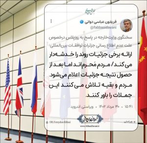 سخنگوی وزارت خارجه در پاسخ به روزپلاس در خصوص علت عدم اطلاع رسانی جزئیات توافقات بین المللی: