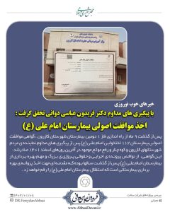 اخذ گواهی موافقت اصولی بیمارستان امام علی (ع)در روزهای پایانی سال ۱۴۰۱