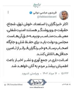 اکثر خبرنگاران بااستعداد، خوش ذوق، شجاع، حقیقت جو و روشنگر هستند؛ امنیت شغلی ، معیشت مناسب و بیمه حق آنهاست.