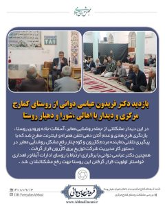 بازدید دکتر عباسی دوانی از روستای کمارج مرکزی و دیدار با اهالی ، شورا و دهیار روستا
