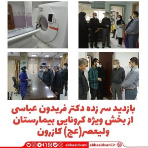 به گزارش روابط عمومی دفتر نماینده مردم شهرستان های کازرون و کوهچنار؛ طی بازدید سرزده دکتر فریدون عباسی از بیمارستان ولیعصر(عج) کازرون به بررسی وضعیت و روند خدماتدهی به بیماران کرونایی و پیگیری جهت رفع مشکلات بیماران بستری پرداخت.