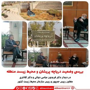 در دیدار اخیر دکتر عباسی دوانی با رییس سازمان محیطزیست کشور آخرین وضعیت دریاچه پریشان بررسی و طرفین راهکارهای احیای این دریاچه را بررسی کردند. در این نشست دکتر فریدون عباسی دوانی بر لزوم توجه حداکثری سازمان محیطزیست به منطقه کازرون و کوهچنار بدلیل اینکه دریاچه پریشان یکی از زیست بومهای ارزشمند ملی است، تأکید داشتند و خواستار تقویت اداره محیطزیست کازرون و تشکیل کارگروه ویژه دریاچه پریشان شدند، در این جلسه دکتر کلانتری ضمن موافقت با پیشنهادات دکتر عباسی دوانی دستورات لازم را صادر و به منظور رسیدگی بیشتر، مقرر شد سفر رییس سازمان محیطزیست کشور به شهرستان کازرون در برنامه ایشان قرار گیرد و بصورت میدانی از این دریاچه و سایر مناطق زیست محیطی مهم منطقه بازدید بعملآید.
