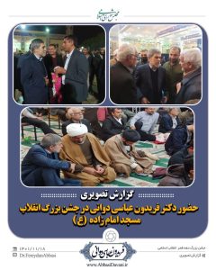 به گزارش روابط عمومی دفتر ارتباطات مردمی نماینده مردم شریف شهرستان های کازرون و کوه چنار دکتر فریدون عباسی دوانی دوازدهم بهمن ماه با حضور در مسجد امامزاده در مراسم بزرگداشت سالروز چهل و چهارمین پیروزی انقلاب اسلامی حاضر شدند و به ایراد سخنرانی پرداختند.