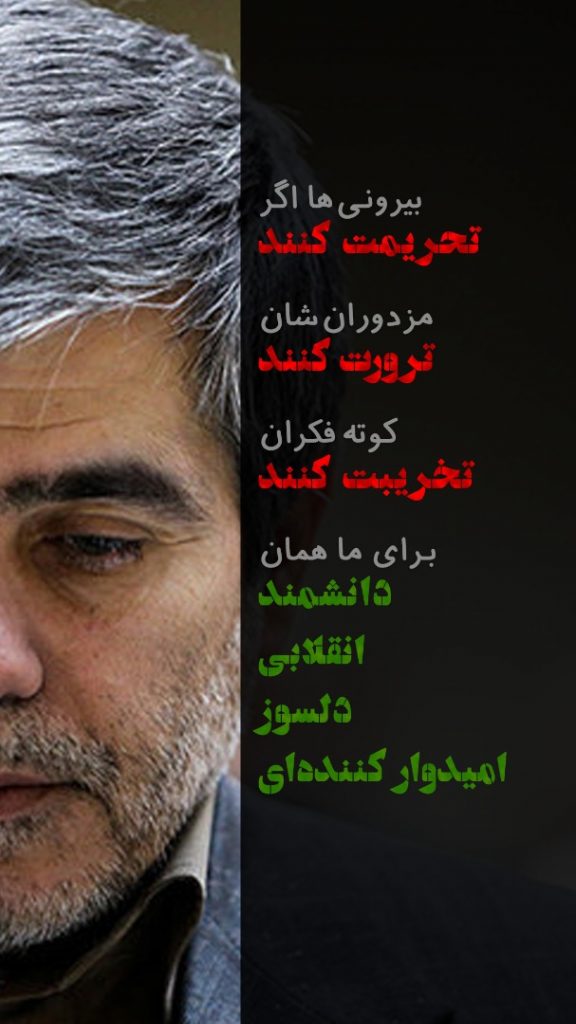 بیرونی ها اگر تحریمت کنند مزدورانشان ترورت کنند برایمان همچنان نقطه امید و قوتی
