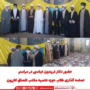 حضور دکتر فریدون عباسی در مراسم عمامه گذاری طلاب حوزه علمیه مکتب الصاق کازرون