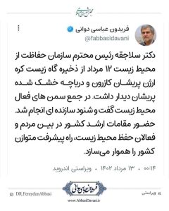 حضور مقامات ارشد کشور در بین مردم و فعالان حفظ محیط زیست، راه پیشرفت متوازن کشور را هموار می سازد.