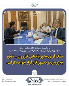 به گزارش روابط عمومی دفتر ارتباطات مردمی دکتر عباسی دوانی ، با پیگیری های مداوم نماینده ی مردم، پس از سفر وزیر میراث فرهنگی به منطقه ی تاریخی بیشاپور ، مجوز اجرای عملیات بهسازی محور پر تردد کازرون_شاپور اخذ و مناقصه ی پروژه سنگ فرش این محور در ماه های آینده صورت میپذیرد.