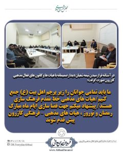 به گزارش روابط عمومی دفتر ارتباطات مردمی نماینده مردم شریف شهرستان های کازرون و کوه چنار، دکتر فریدون عباسی دوانی با دعوت از فعالین هیات های مذهبی و کانون های فرهنگی کازرون نشست هم اندیشی در خصوص مسائل فرهنگی شهر کازرون برگزار کرد.