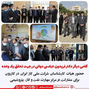 به گزارش روابط عمومی دفتر نماینده شهرستانهای کازرون و کوه چنار، در راستای راه اندازی مرکز مهارت نفت گاز و پتروشیمی، با پیگیری دکتر فریدون عباسی دوانی، نماینده دلسوز مردم شریف شهرستان های کازرون و کوه چنار، هیات ۱۲ نفره از کارشناسان خبره شرکت ملی گاز ایران به سرپرستی مدیرکل آموزش و پژوهش این شرکت از زیرساخت های شهرستان در بخش های آموزشی، امکانات هتلینگ و اسکان، توان اساتید آموزشی ، امکانات کارگاهها و … در جهت راه اندازی بخش مهارت در ” حوزه گازی ” و در زمینه مورد نیاز مهارتی این شرکت مشتمل در دو بخش گازرسانی و انتقال گاز بازدید میدانی و در جمع بندی این بازدید جهت پیاده سازی ” فاز گازی ” در این مرکز مهارت توافقاتی و برنامه ریزی اجرایی با مسئولین شهرستان بعمل آمد.