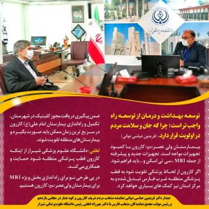 توسعه بهداشت و درمان از توسعه راه واجبتر است/ کمبودهای درمانی کازرون و کوهچنار هرچه سریعتر باید جبران شود
